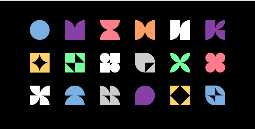 Formas derivadas dos mesmos 4 quadrados originário compõe os elementos gráficos usados em toda sua identidade visual, das embalagens à comunicação online e no PDV.